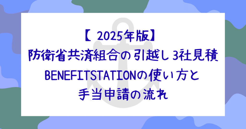 【2025年版】防衛省共済組合の引越し3社見積|benefitstationの使い方と手当申請の流れ