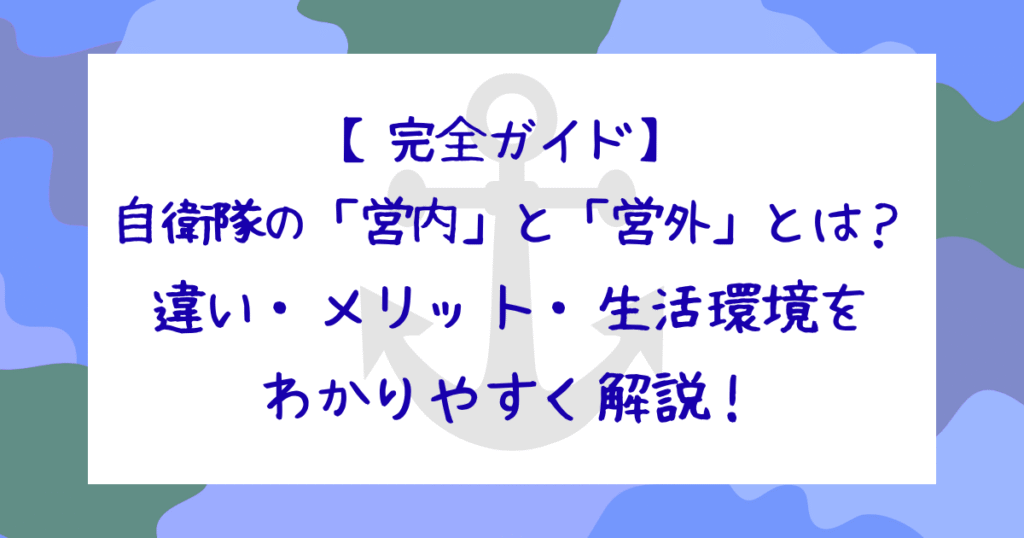 この記事では、「営内」「営外」の基礎知識から、実際の生活環境、メリット・デメリットまで、初心者にもわかりやすく解説していきます。