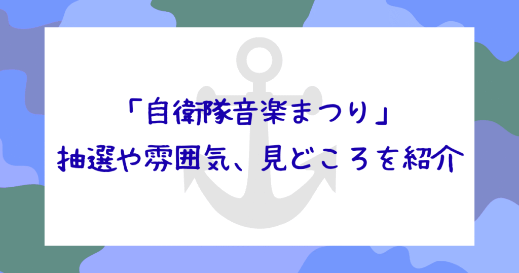 自衛隊音楽まつりは、防衛省・自衛隊が主催する音楽イベントで、陸・海・空の音楽隊が一堂に会して演奏を披露します。