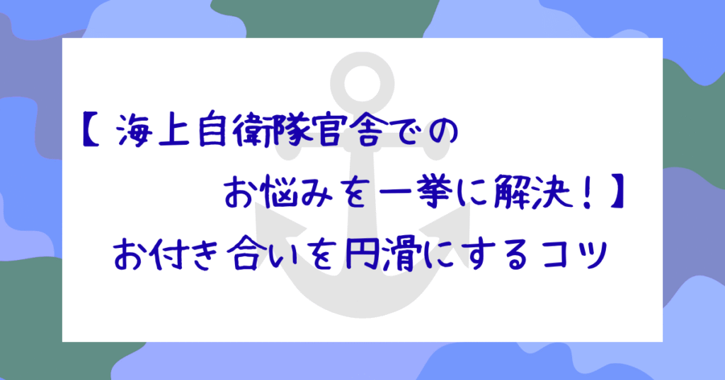 人間関係の悩みというのはつきませんよね。何度転居を繰り返しても、毎回新しい官舎に入居する度に緊張感があります。まず、ご近所付き合いに関しては、挨拶と当番に参加するなど基本的なことをやっておけば問題ありません。