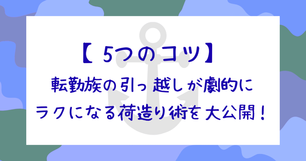 転勤族にとって引っ越しは避けて通れないイベントです。何度も経験しているはずなのに、毎回バタバタしてしまう…そんな悩みを抱えていませんか?荷造りがスムーズに進めば、引っ越しのストレスを大幅に減らすことができます。