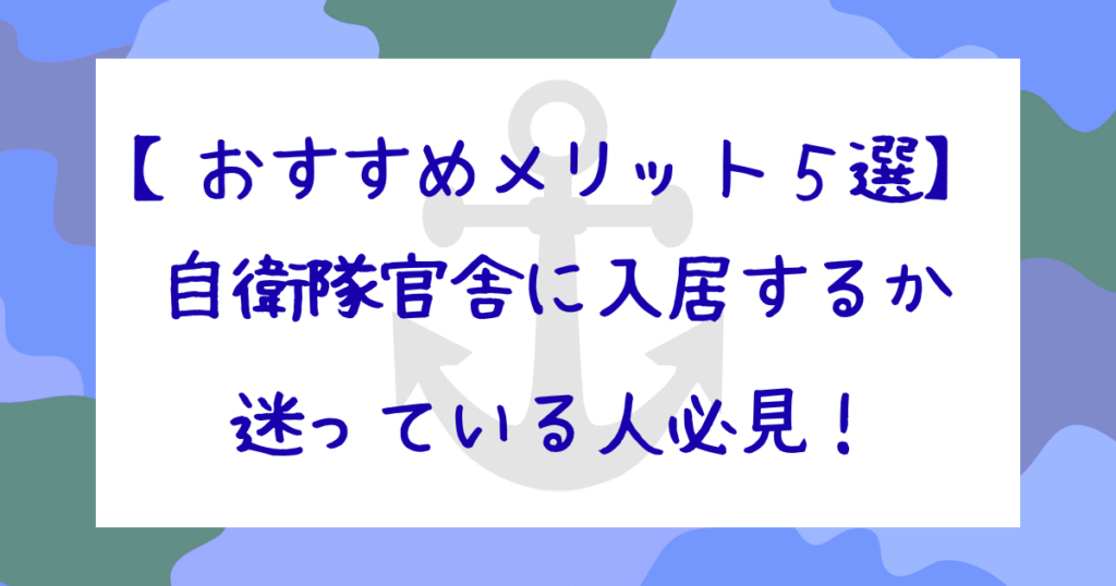 官舎に住む最大のメリットは、『住居探しの手間がかからない』ことです。自衛隊員には基地の近くに官舎が提供されるため、物件探しに時間を取られることなく、スムーズに引っ越しができます。この利点を活用すれば、転勤の負担を大幅に軽減できるでしょう。